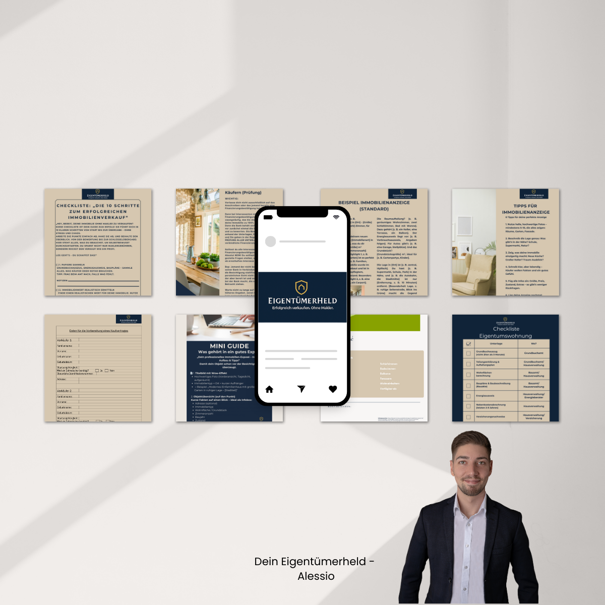 Checklisten, Mustervorlagen & ein klarer roter Faden helfen dir, strukturiert durch den gesamten Verkaufsprozess zu gehen – ohne Maklervertrag und ohne Chaos.